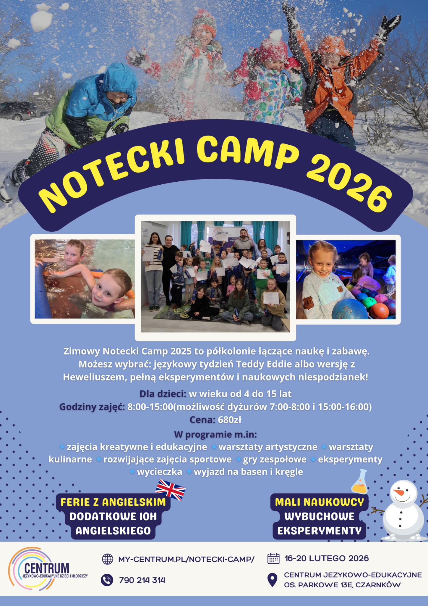 Bez względu na porę roku, najważniejszy jest dla nas uśmiech uczestników, ich bezpieczeństwo i komfort. Oferujemy pełną opiekę wykwalifikowanej kadry, smaczne posiłki, ubezpieczenie i przyjazną atmosferę, w której dzieci mogą rozwijać swoje pasje, budować pewność siebie, uczyć się współpracy i poznawać nowych przyjaciół. Wspomnienia z Noteckiego Campu zostają na długo – zarówno w sercach dzieci, jak i w rodzinnych albumach.
